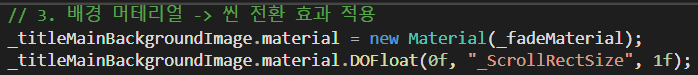 화면 전환 셰이더 효과 후에 Material 값을 원래대로 리셋해야 하는 경우, 일시적으로 Material을 변경하고 나서, 원래 값을 저장해 두었다가 애니메이션이 끝난 후 복원하는 방법도 가능하지만, 처리를 해주지 않는 경우에는 해당 Material의 프로퍼티 값들이 스크립트에서 변경한 값으로 매핑되어 있어 문제가 발생할 수 있다는 점이 있어 매우 난감하였다.