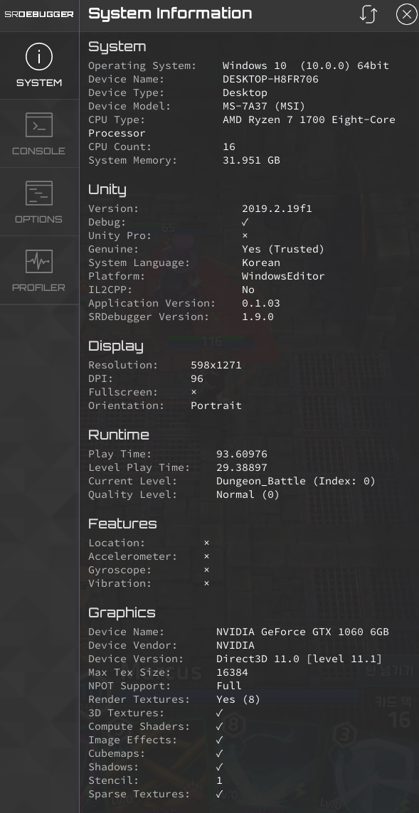 #7. SRDebugger 사용